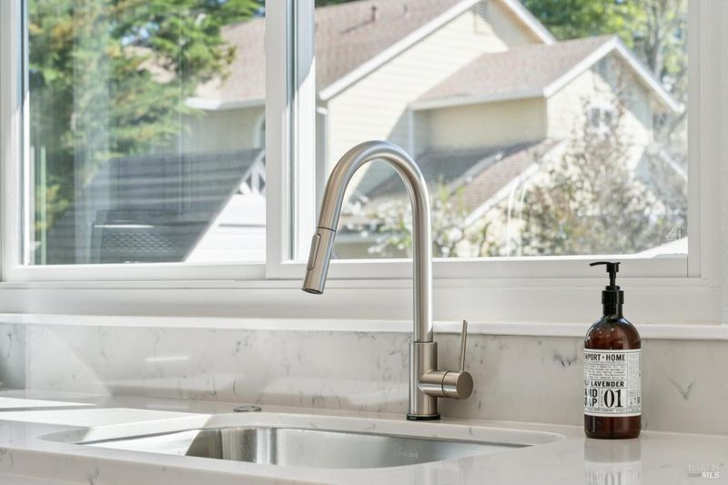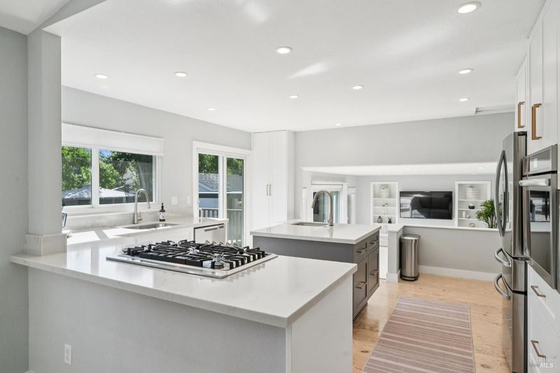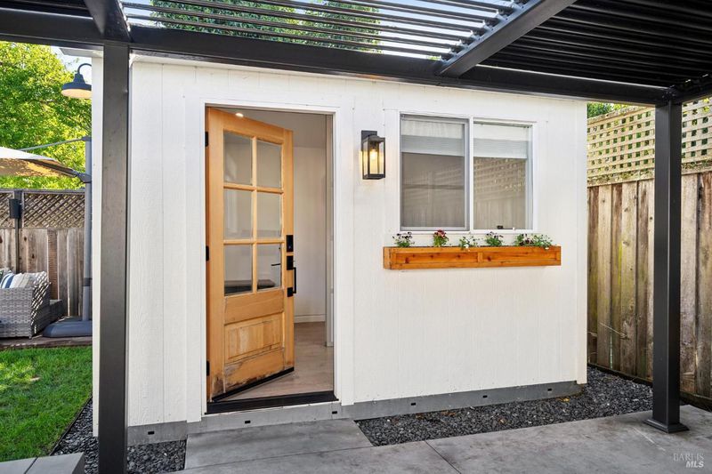 Entertaining comes naturally at 1372 Larkin Drive. The floor plan moves easily between a living room at the entry, a dining room, and a family room each a natural gathering zone before opening through sliding doors to a backyard designed for every kind of occasion. The kitchen slider leads to lounge seating and a lush lawn with a play structure; the family room slider connects to a pergola-covered dining area with adjustable louvers, perfect for al fresco dinners with space for your BBQ nearby. A fully detached climate-controlled office with two workstations completes the picture. Twenty people spread out here without anyone feeling crowded. The kitchen is the centerpiece: a 5-burner cooktop, built-in oven and microwave, stainless prep sink in the island, dual Fisher & Paykel drawer dishwashers, and quartz countertops appointed at a level that makes cooking for a crowd genuinely enjoyable rather than aspirational. Vaulted ceilings carry through the living room and primary suite, where a walk-in closet and spa-caliber bath with dual-head steam shower deliver a real retreat at the end of the day. Three bedrooms, three full baths, 2,015 square feet plus the detached office. Anderson windows and doors throughout. Attached two-car garage with two additional off-street spaces. A professionally landscaped front yard with retaining wall and level lawn. The design and installation carries through to a private, fenced backyard that lives larger than the lot size suggests. Tucked into Sonoma's Larkin neighborhood at the south end of town easy access to the Plaza, wine country, and the greater Bay Area this is a home that works as hard as the people who live in it, and knows how to slow down on the weekends.