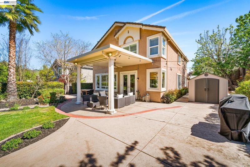Beautiful 5-bedroom, 3-bathroom, 2,632 square foot home in the highly desirable Tassajara Ridge community. Situated on an expansive 11,700 sq. ft. lot, this property offers incredible potential with ample space for a pool, ADU, or your dream backyard retreat. Step inside to find hardwood flooring and classic plantation shutters that add warmth and timeless style throughout. The versatile floor plan includes a bedroom and full bathroom on the first level, ideal for guests, extended family, or a private home office. The light-filled kitchen features quartz countertops, stainless steel appliances, and generous prep space, opening seamlessly to the family room and outdoor patio—perfect for everyday living and entertaining. Upstairs, the spacious primary suite provides a relaxing retreat, accompanied by three additional bedrooms offering flexibility for family, work, or hobbies. Step outside to a resort-style backyard designed for gatherings, complete with a covered pergola and patio, ideal for outdoor dining and entertaining. Conveniently located near top-rated SRVUSD schools, parks, shopping, dining, and commuter routes, this home offers the perfect blend of comfort, space, and location. Welcome Home!