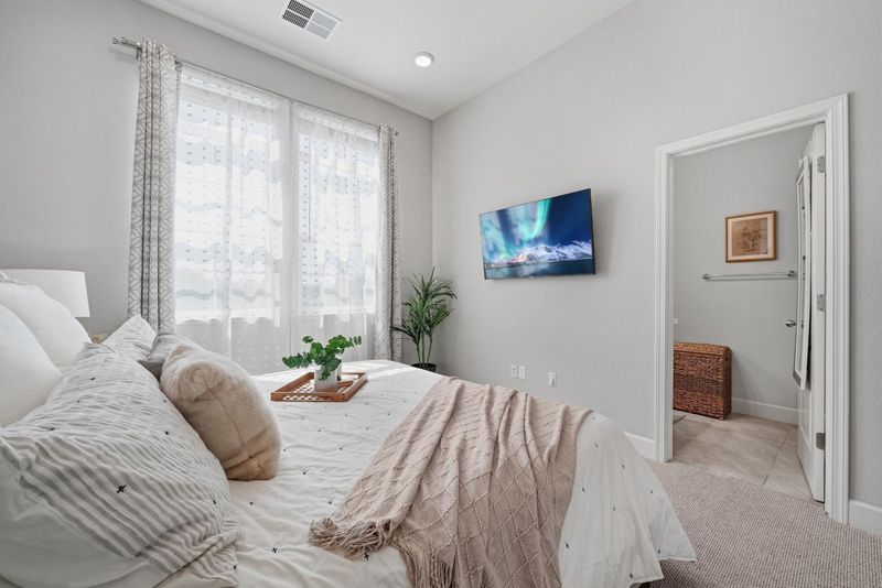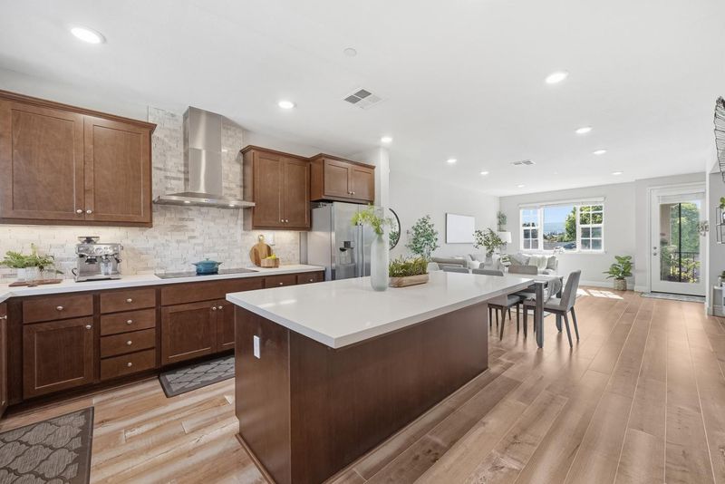 Built in 2020, this well-maintained PUD townhome blends contemporary design with modern comfort in the heart of Silicon Valley. Featuring 4 beds, 3.5 baths, 1,749 sqft of thoughtfully designed living spaces, the home includes double primary suites, spacious open layouts, and high-end finishes throughout, along with a private balcony, in-unit laundry room, a side-by-side two-car garage, and plenty of guest parking spaces. The ground level features a private bedroom suite with a full bath and a generous closet, ideal for guests, rental income, or multigenerational living. On the second level, enjoy a bright open-concept living and dining area with a chef's kitchen. The kitchen is equipped with Mahogany shaker cabinets, Silestone quartz countertops, a full mosaic backsplash, and premium stainless steel appliances, including an induction cooktop, hood, microwave, wall oven, and dishwasher. The third level offers a second primary suite along with two additional bedrooms and a full bath, providing flexibility for families, guests, or work-from-home needs. A dual-zone heating and cooling system provides year-round comfort. HOA covers garbage. Easy access to VTA, Hwy 101, 237, and 85. Just minutes from Google, Meta, Nvidia, and other major tech companies.