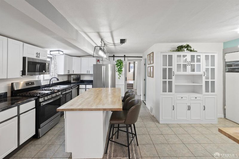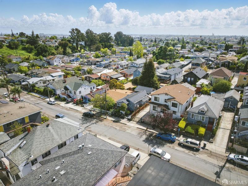 Nestled on a tranquil street, 3541 Custer combines modern upgrades with serene outdoor living, making it your private sanctuary in Harrington. Benefit from a newly-installed roof equipped with owned solar panels & a compliant private sewer lateral. The main level highlights a bright entryway & living room that lead into a generously-sized kitchen. The kitchen features a full suite of GE appliances, granite countertops, wood cabinets. The main level also hosts 2 bedrooms, accompanied by 2 modern bathrooms. Descend the internal staircase to discover a finished basement that previously served as a bedroom. Additionally, the lower level hosts a separate unfinished area perfectly suited for a potential ADU. This space features new wood framing, a separate private street-facing entrance, & an existing bathroom. At the heart of this property lies an enchanting backyard, anchored by the majestic presence of a mature Coast Redwood tree. Enjoy the privacy of the fully-fenced-in patio filled with over 16 individual varieties of fruit-bearing trees. Situated just off 35th Ave, 3541 Custer offers easy access to 580 & 880, is a mere 5 minutes from Fruitvale BART, & a Walk Score of 75. Property qualifies for special financing with no PMI & low downpayment.