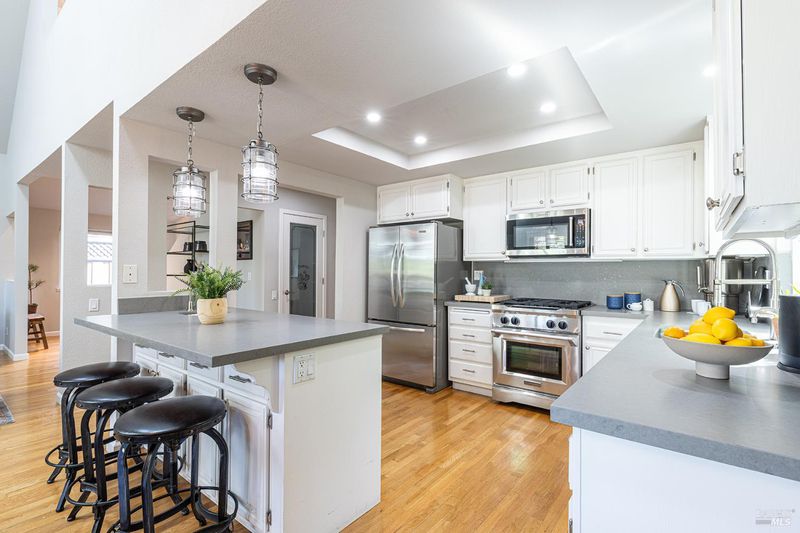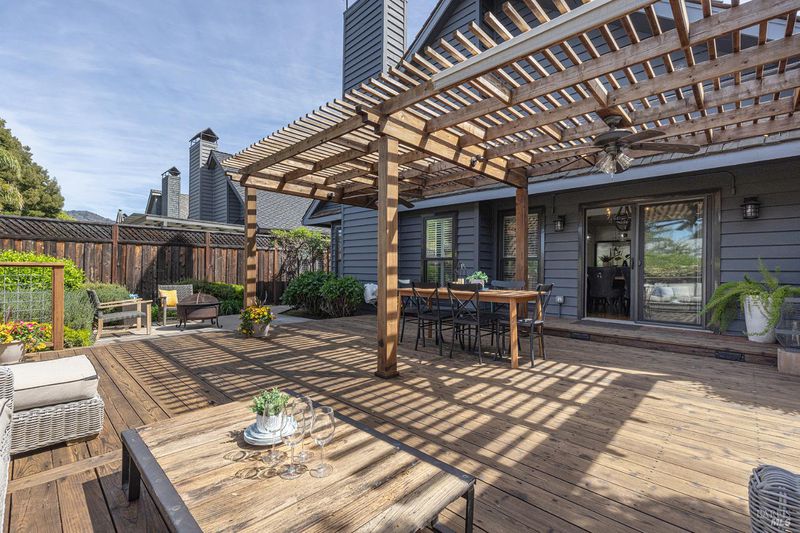 Welcome to an exquisite opportunity at 1922 Oak Circle, a Yountville exclusive and rare offering in the heart of Yountville. As the largest model in this upscale Oak Circle neighborhood, this residence delivers an unparalleled living experience across 1,765 square feet, featuring three bedrooms and two opulent bathrooms. Conveniently located on the first level, the primary suite is pure luxury, boasting an ensuite adorned with a Carrara marble vanity, complemented by an elegant basketweave Carrara marble and gray Bardiglio floor, and offering direct access to a charming small patio. The second bedroom is both spacious and refined, featuring a custom temperature-controlled wine cellar that can accommodate over 400 bottles - a true connoisseur's dream space. This level also hosts the second bathroom, a sanctuary of relaxation, offering a deep soaking tub with a marble surround and tasteful basketweave Carrara marble and gray Bardiglio accents, completed by a custom glass door. The chef's kitchen is a sunlit haven, designed for culinary excellence with stone counters and a concrete-look backsplash. Its large island seamlessly connects to the dining area and the spacious great room, featuring vaulted ceilings and a stunning fireplace ideal for both intimate gatherings and grand entertaining. Step outside onto the expansive refinished deck, where a pergola-style covering elevates your outdoor dining and living experience. Just a few blocks from Washington Street, indulge in world-class dining, shopping, and wine tasting as you embrace the jewel of Napa-Yountville. The Yountville lifestyle awaits, complete with community amenities such as a large pool, spa, and courts for tennis and pickleball. Experience elegance redefined!