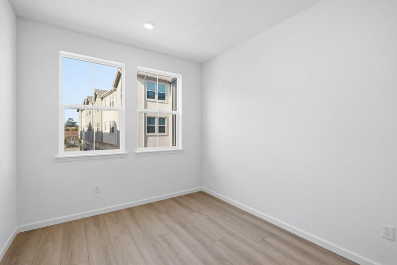 Homebuyer Favorite! Enjoy extra space with an ADU (accessory dwelling unit) complete with separate entrance, kitchen and full bath. The main home showcases a bright and spacious dining and living area (leading to your own private outdoor deck), a modern kitchen with an island and pendant lighting, granite countertops and stainless-steel appliances. Convenient bedroom and full bath on same floor. On the 3rd floor, a large primary bedroom leads to a walk-in closet. Luxury vinyl plank flooring throughout. Other features include a 40-amp. electric charging station pre-wiring, solar energy system (lease or purchase required) and a limited 10-year warranty. This brand-new community will feature a community play area, bike lane, bike racks and bike repair station, plus park-like areas with seating, open space and art installations. Walking distance to Castro Valley BART station; convenient to I-580 and Tri Valley, San Jose and Mid-Peninsula job centers. Close to outdoor recreation, including Chabot Regional Park and Cull Canyon Regional Recreation Area. Be home for the holidays. Schedule a tour today.