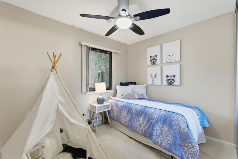 Spacious single-level 3-bedroom, 2-bath end-unit condo designed for both comfort and convenience. Featuring two private balconies (each with its own storage closet), an in-unit washer and dryer, and two gated covered parking spaces, this home offers flexible and functional living. The primary suite includes dual closets, while the third bedroom features a walk-in closet, providing ample storage throughout. Residents enjoy resort-style amenities including a pool, spa, fitness center, clubhouse, BBQ area, and playground. Ideally located near highly sought-after Cupertino Union schools (rated 9 and 10) and approximately 1 mile from Apple Park, with easy access to nearby parks, golf courses, shopping, and dining. Come have a feel for your next home. Schedule a private tour.