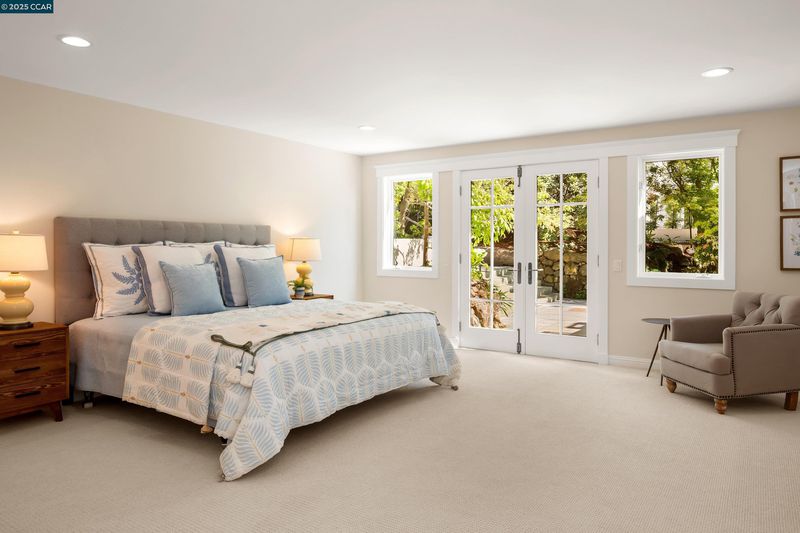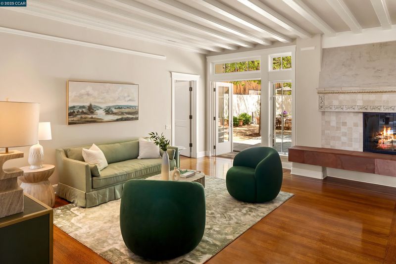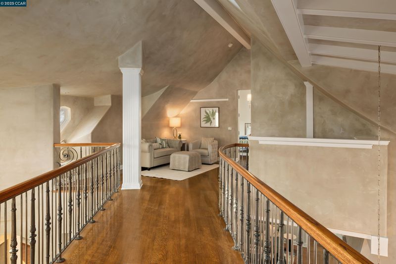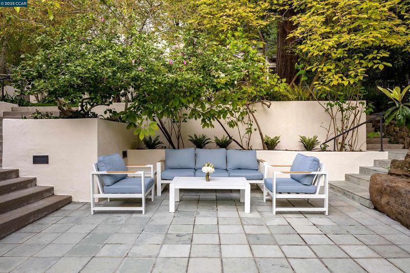 A landscape architect and urban planner designed this one-of-a-kind home on over a half-acre in the Berkeley Claremont Hills, capturing breathtaking views of the Golden Gate and Bay Bridge. The living room—with its vaulted ceilings and hardwood floors—forms the heart of the home, perfect for entertaining. Enjoy formal dining or casual meals in the open-concept kitchen and family room, where French doors open to the garden and pool. The main-level primary suite features a soaring ceiling, private outdoor access, and a spa-like bath with marble finishes, skylights, and dual walk-in closets. Upstairs, two additional en-suite bedrooms boast dramatic bridge views and overlook the open-concept living space below. The lower level includes a spacious family room, home office, gym, wine room, and a fourth bedroom with a private courtyard. Outdoors, mature landscaping by noted designers transforms the grounds into a private botanical garden, filled with color and texture throughout the year. The property also includes a separate 2-bedroom, 2-bath guest house (1,035 sq ft) with a full kitchen and a free-standing timber-frame bonus room. Peaceful and private, yet moments from Berkeley’s cultural and culinary destinations—this is an urban retreat in perfect harmony with nature.