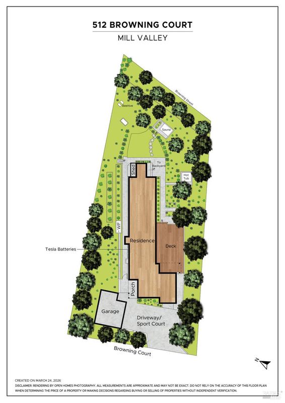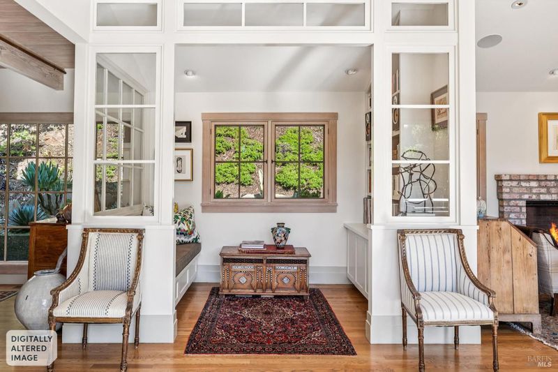 512 Browning Court balances refined architectural details with the soul of a modern estate. This home is designed for the discerning resident who values material, light,and a seamless connection to the curated landscape.The entry flows through the foyer that opens into the home's social axis: an expansive kitchen and family room. With exposed beam ceilings and skylights,the space has a serene,natural volume. The sun drenched kitchen is equipped with a 6 burner Wolf range,Calacatta marble counters,custom cabinetry and a butcher block island. Under-counter refrigeration maintains clean visual lines. Beyond the kitchen,the floor plan creates various vignettes with a dedicated library nook and a separate fireplace lounge area as a backdrop for cocktail hour or reflection,all anchored by oak hardwood floors. Folding NanaWall-style doors disappear to merge the dining and living areas with the spacious,south-facing deck with gas firepit, optimizing the California indoor-outdoor experience. The primary suite is a light-filled retreat overlooking the gardens, featuring a walk-in closet and direct access to the lush grounds. Two additional bedrooms on the main level sport vaulted ceilings,enhancing the sense of scale.The upper level serves as a versatile atelier or secondary social hub. Another family room with vaulted ceilings includes a built-in desk area, office nook, and fourth bedroom with views of the garden. The curated, drought tolerant, mostly native ecosystem designed by the owner, a Master Gardener,allows for both production and restorative enjoyment, and reflects the agricultural heritage of the surrounding neighborhood. A secluded saline hot tub, sauna with outdoor shower and cold tub are set against a backdrop of mature landscaping. Tiered vegetable gardens,an espaliered pomegranate, and active beehives offer an edible landscape while a flat, grassy lawn and water feature are complemented by a curated succulent garden.Modern efficiency, using passive-energy design,is integrated throughout the property,featuring dual-paned windows,solar system and Tesla Powerwall for energy independence, all managed by Nest smart thermostats. The spacious two-car garage is EV charging ready & has significant built-in storage while the wide driveway doubles as a private sport court with a basketball hoop.Views, abundant light, proximity to local amenities,easy access to San Francisco & mins to beaches and State Parks make this home a rare and desirable combination.
