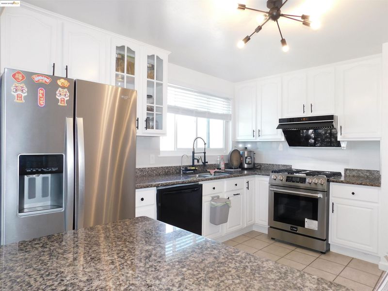 - Dishwasher, Free-Standing Range, Refrigerator, Dryer, Washer, Breakfast Nook, Counter - Solid Surface, Range/Oven Free Standing, Updated Kitchen