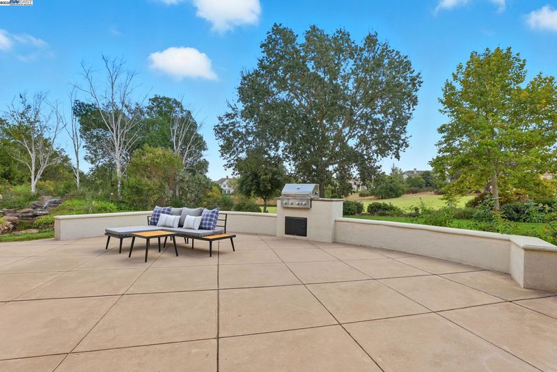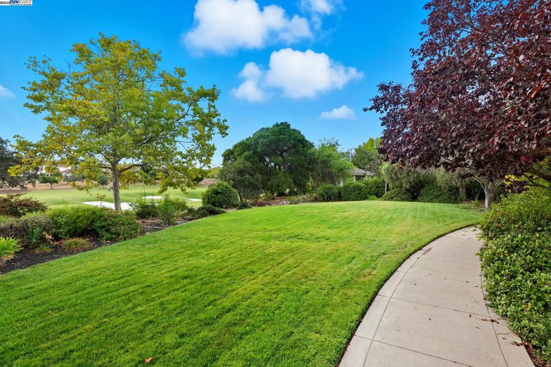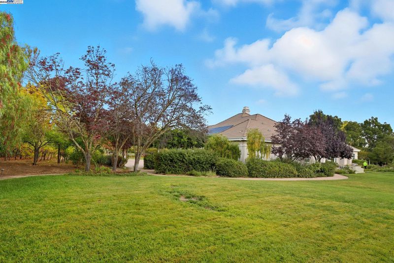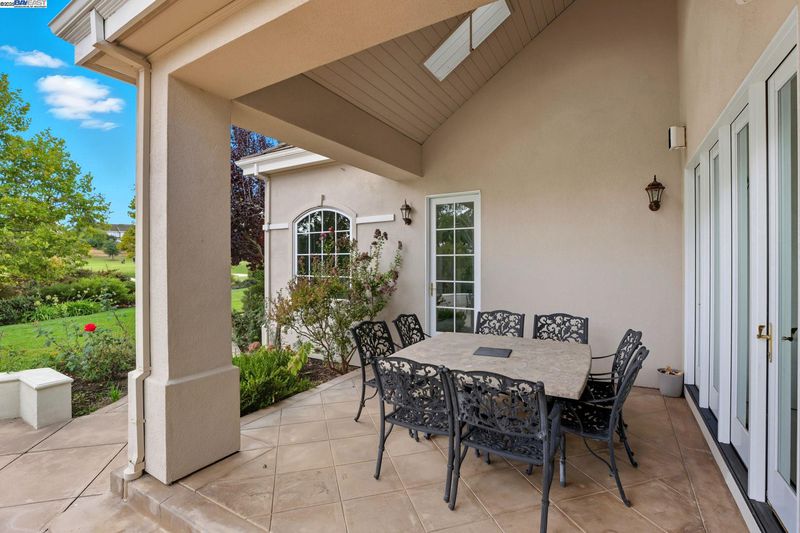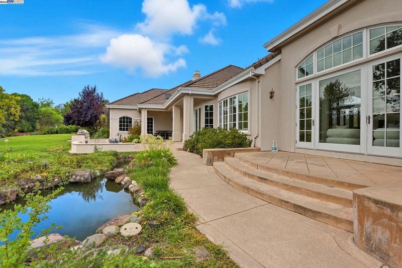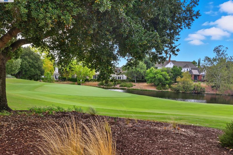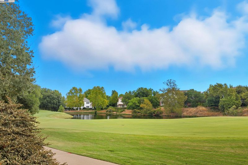 Single-story living in the prestigious gated community of Ruby Hill that backs to the golf couse and pond. This beautiful home offers 4 bedrooms and 3.5 bathrooms. The dining room, family room and living room are all complemented by newly installed stylish premium laminate floors. The kitchen, with views of the golf coures and a pictureque backyard, features a pantry and central island and refinished cabinets. The 5th bedroom is used and an office with customed desk and book shelf. Additional features include a dedicated handicaft room. The primary suite is a sanctuary, boasting two walk-in closets and a luxurious bathroom with dual vanities. The backyard, overlooking the 2nd fairway, is features an outdoor BBQ and a fish pond. The oversize lot includes mature landscaping with 64 Primitivo grapevines in a private vineyard setting. This energy-efficient home benefits from leased solar panels with very low rate and includes a 3-car garage.