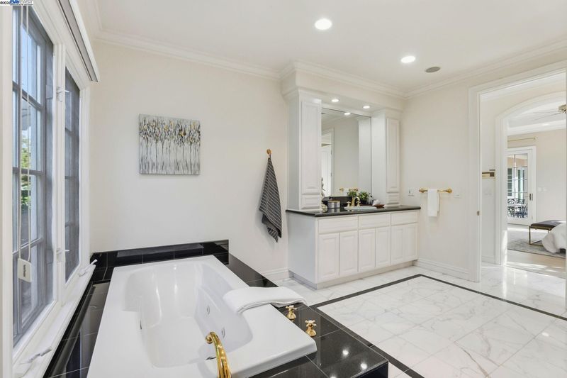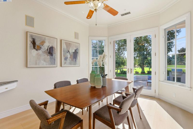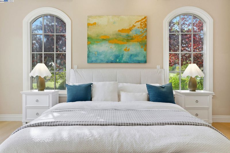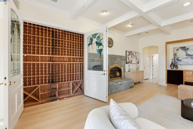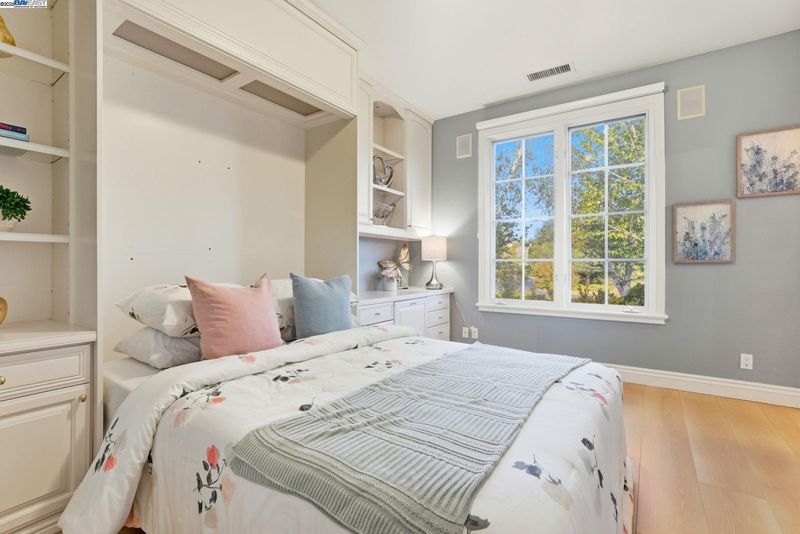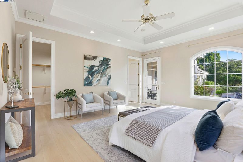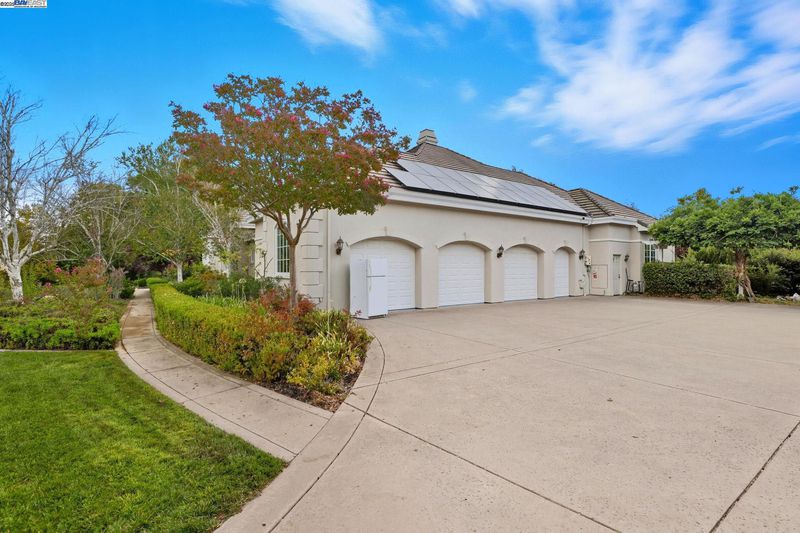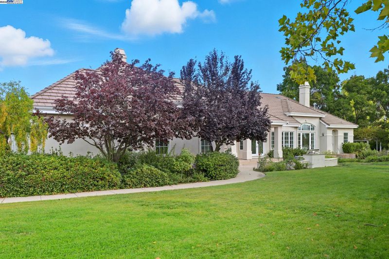 Single-story living in the prestigious gated community of Ruby Hill that backs to the golf couse and pond. This beautiful home offers 4 bedrooms and 3.5 bathrooms. The dining room, family room and living room are all complemented by newly installed stylish premium laminate floors. The kitchen, with views of the golf coures and a pictureque backyard, features a pantry and central island and refinished cabinets. The 5th bedroom is used and an office with customed desk and book shelf. Additional features include a dedicated handicaft room. The primary suite is a sanctuary, boasting two walk-in closets and a luxurious bathroom with dual vanities. The backyard, overlooking the 2nd fairway, is features an outdoor BBQ and a fish pond. The oversize lot includes mature landscaping with 64 Primitivo grapevines in a private vineyard setting. This energy-efficient home benefits from leased solar panels with very low rate and includes a 3-car garage.