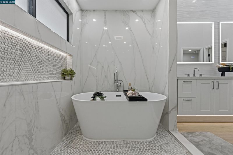 - Shower Over Tub, Skylight(s), Solid Surface, Tile, Tub, Updated Baths, Dual Flush Toilet, Stone