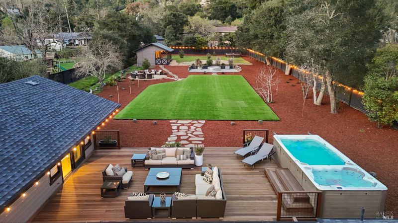 Set on over 3/4 acre of level, landscaped land, this magnificent single story home exemplifies Sleepy Hollow easy living! The home features 4 bedrooms and 3 full bathrooms, a gracious foyer, large Living Room with vaulted ceiling with exposed beams, a fireplace, and wall of windows, and Dining Room with French Doors to the deck, remodeled Kitchen, large office/pantry area and huge garage and family room. The primary suite also opens to the redwood deck and features an en-suite remodeled bathroom with double sinks, and a walk-in closet. There are an additional 3 bedrooms on this wing, and built-in cabinets along the central hallway for optimal storage. The family bathroom has also been recently remodeled. The home features a recently replaced roof, new copper plumbing and electrical wiring, new insulation under the home, and a whole house electrical upgrade to 400 amps (in progress). The home opens to the central 600 sq ft +/- redwood deck with yard beyond, featuring fruit trees, turf lawn and many areas for further improvement. Near the back of the property is an old horse barn. There is a top of the line above ground swimming pool and spa, and plenty of space on the land for a larger in-ground pool. Down the street from Sleepy Hollow Swim & Tennis Club, renowned schools.