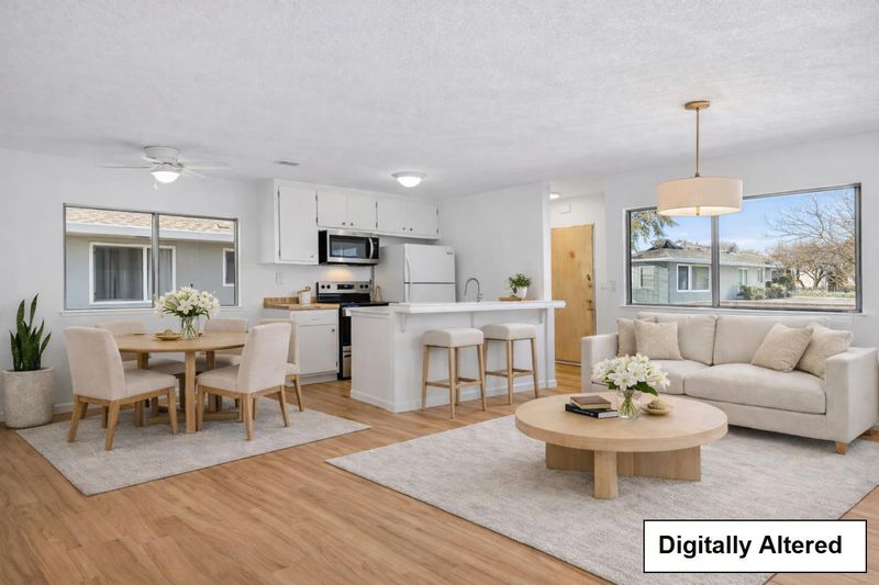 Welcome to 5577 Spinnaker Drive #4! This charming upstairs condo features a spacious bedroom with ample closet space and one full bathroom. The tandem parking includes one garage space and one uncovered space. Freshly painted throughout, the home offers elegant new vinyl flooring, updated kitchen countertops, and a new stove and microwave. The open-concept living and dining area creates a comfortable and welcoming atmosphere. Perfectly situated near parks, schools, shopping, restaurants, and medical clinics, the property also provides easy access to Highways 85, 87, 280, 101, and 680 for added convenience. Virtual staging for inspiration.