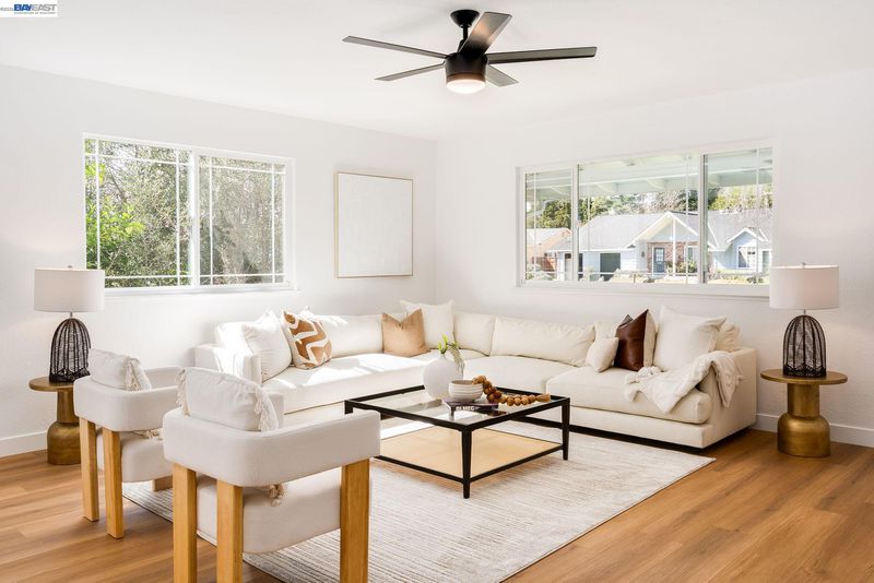 Welcome to this beautifully upgraded NW-facing home in the heart of Dublin. Positioned on a premium corner lot with no side neighbors, this property offers abundant natural light and a bright, open-concept layout. Thoughtfully updated throughout, the home features French oak flooring, a remodeled kitchen with quartz countertops, shaker cabinetry, stainless steel appliances, and a deep stainless sink. The bathrooms have been tastefully updated with clean, modern finishes. Additional upgrades include updated interior doors and a newer roof, delivering both style and long-term peace of mind. With 4 bedrooms and 2.5 bathrooms, the layout is functional, spacious, and ideal for both everyday living and entertaining. Located within walking distance to top-rated schools, the Iron Horse Trail, dog park, shopping, and dining—and just minutes to I-580, I-680, and BART—this is convenience at its best. Corner lot homes with this level of upgrades are rare in Dublin. Don’t miss it.