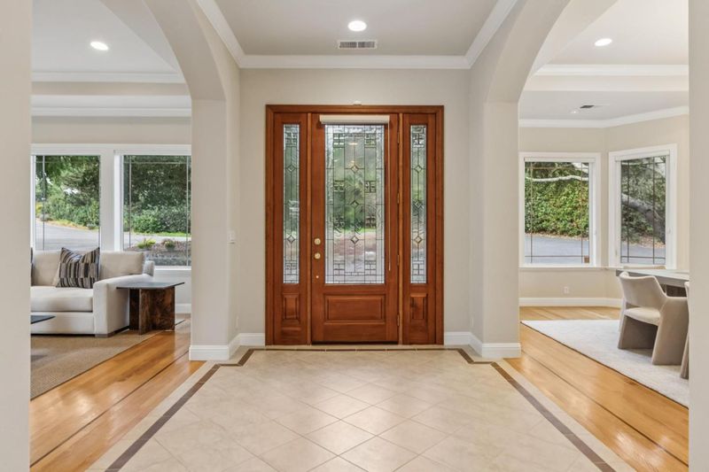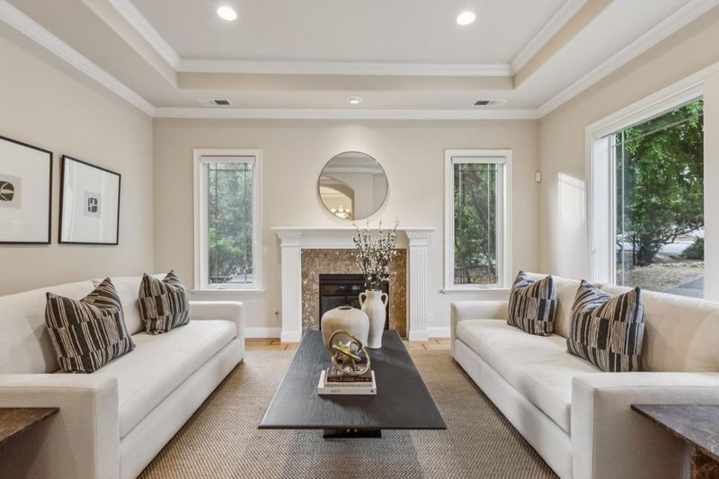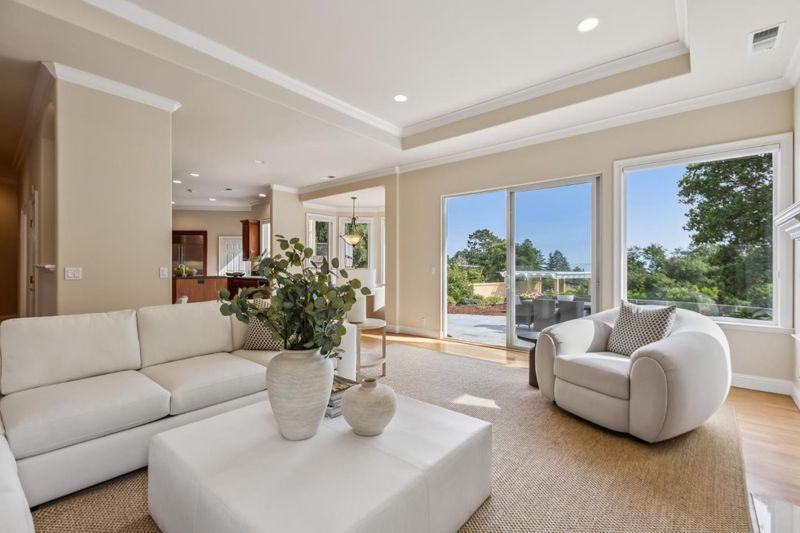 Set on a beautifully landscaped setting with sweeping Bay views, this impeccably maintained Woodside residence offers a rare blend of privacy, scale, and resort-inspired living. Spanning approximately 3,520 square feet, the 4-bedroom, 3.5-bathroom home is thoughtfully designed with a seamless balance of formal and casual spaces. A gracious entry introduces light-filled interiors with high ceilings, refined millwork, and an elegant flow throughout. The living and dining rooms open effortlessly to the outdoors, while the well-appointed kitchen complete with custom cabinetry, stone countertops, and a central island anchors the homes gathering spaces. The primary suite is a true retreat, featuring generous proportions, a private view deck, and a spa-like bath. Additional bedrooms offer flexibility for guests, office, or extended living. Designed for both everyday living and entertaining, the grounds are exceptional featuring expansive patios, manicured landscaping, a sparkling pool, and a covered lounge area. Multiple vantage points capture the surrounding natural beauty and distant views, creating a sense of tranquility throughout. A rare opportunity to enjoy elevated living in one of Woodsides most sought-after settings, with convenient access to top Peninsula amenities.