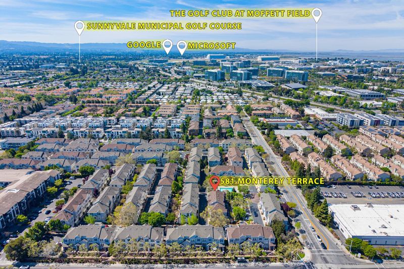 Welcome to 581 Monterey Terrace, a bright, move-in ready end-unit home in the heart of Sunnyvale. North-facing and bathed in natural light, it is one of the few homes with open green space out front, creating privacy and a rare connection to nature in this Silicon Valley townhome community. Walk or bike to nearby tech campuses like Google, Meta, Amazon, Apple, LinkedIn, Walmart, Juniper Networks and Alibaba, with private corporate shuttles serving the area. The home enjoys a prime corner position, offering abundant light and an open, airy atmosphere. A versatile bonus space on the lower levelideal for a home office, gym, creative studio or home theateris not included in the recorded square footage, offering flexibility and added value for todays modern lifestyle. The prime central location offers unparalleled convenience: minutes from major freeways, San José International Airport, Levis Stadium, Great America, and the scenic Baylands Park, offering abundant options for dining, sports, and outdoor recreation. Steps from Arwa Yemeni Coffee and close to Fair Oaks Light Rail station, this location blends vibrant urban energy with everyday ease. A rare opportunity to own a bright, functional, and well-located home in one of Silicon Valleys most connected communities.