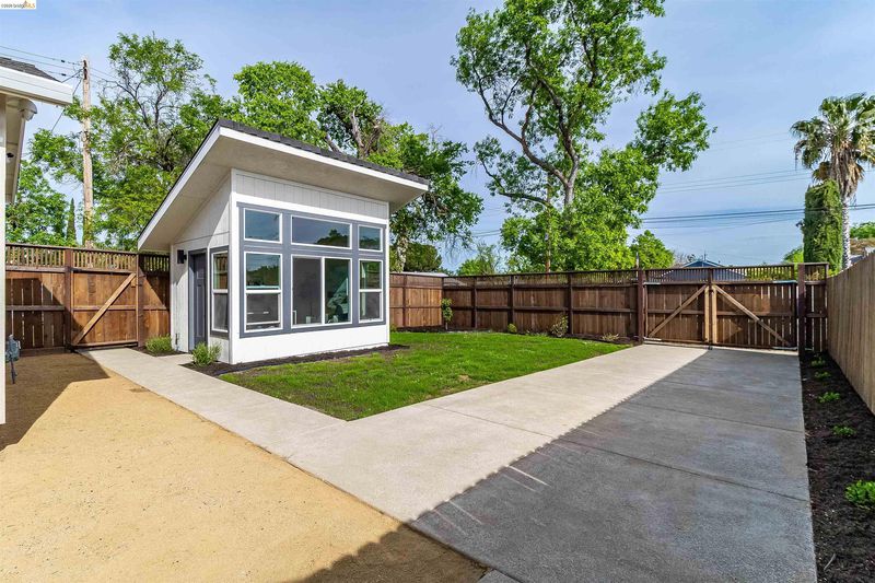 Introducing STEVENSON REVIVAL! Completely reimagined and rebuilt from the studs, this stunning home offers modern comfort, style, and efficiency inside and out. Featuring new stucco, windows, roof & gutters, plus concrete work, the exterior shines with fresh landscaping, sprinkler system, raised garden beds, new sod, Trex deck, and full privacy fencing. Enjoy RV parking with dual gates, dedicated power, EV charger, & a detached storage shed. Inside, no detail was overlooked—new engineered hardwood floors, baseboards, doors, Sheetrock, texture, and paint throughout. The designer kitchen boasts shaker cabinets, stainless steel appliances, farm sink, pantry pull-outs, lazy Susan, and sleek black hardware. Both bathrooms are fully upgraded with new tile, fixtures, and vanities, including a luxurious primary suite with dual sinks and walk-in closet with custom organizers. Additional upgrades include new HVAC, ductwork, plumbing, electrical panel and wiring, insulation, water heater, CAT-6 wiring, and security system. A bonus studio w/ vaulted ceilings & its own climate control adds flexible living space for office or gym. Move-in ready w/ high-end finishes and thoughtful upgrades throughout. This home is truly a modern & magical makeover just waiting for you to make it your new home!