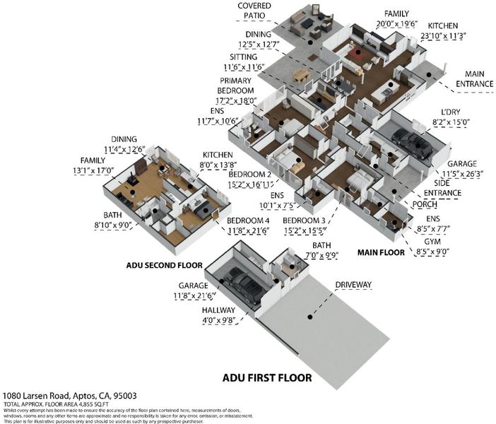 Behind a private gated entrance, this hilltop residence spans over 9.2 acres parcel with south facing ocean views stretching across Monterey Bay toward Moss Landing & Pacific Grove, creating a setting defined by privacy, open space, and natural beauty. Built in 2012, the single level main residence offers 3,314 sq ft with 3 bedrooms & 4 baths. Walls of glass open to south facing ocean view outdoor living spaces anchored by a gourmet kitchen w/8 burner Viking range, large island and professional grade appliances. Additional features include radiant heated floors, wood burning fireplace, metal roof, copper gutters, solar, whole house water filtration, and well water. An outdoor kitchen with BBQ, pizza oven, refrigerator, and entertaining area extends the living space. Olive and mixed fruit orchards, meditation garden, bocce court, and chicken coop enhance the land. The guest house provides 1 bed ,1 bath w/granite kitchen & bath finishes, hardwood floors, plus a 2 car garage w/a workshop and another full bath. Seller prefers to include the furnishings & artwork at an additional negotiated price, for a turnkey experience. Located approx 4 miles to Aptos Village & 5 miles to Rio Del Mar Beach you can truly get away from it all without compromise to location, access, or lifestyle.
