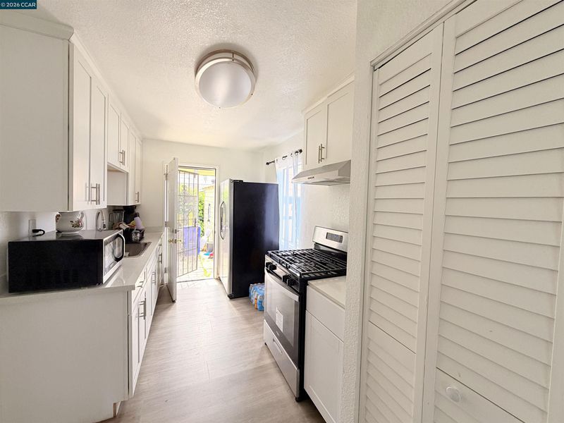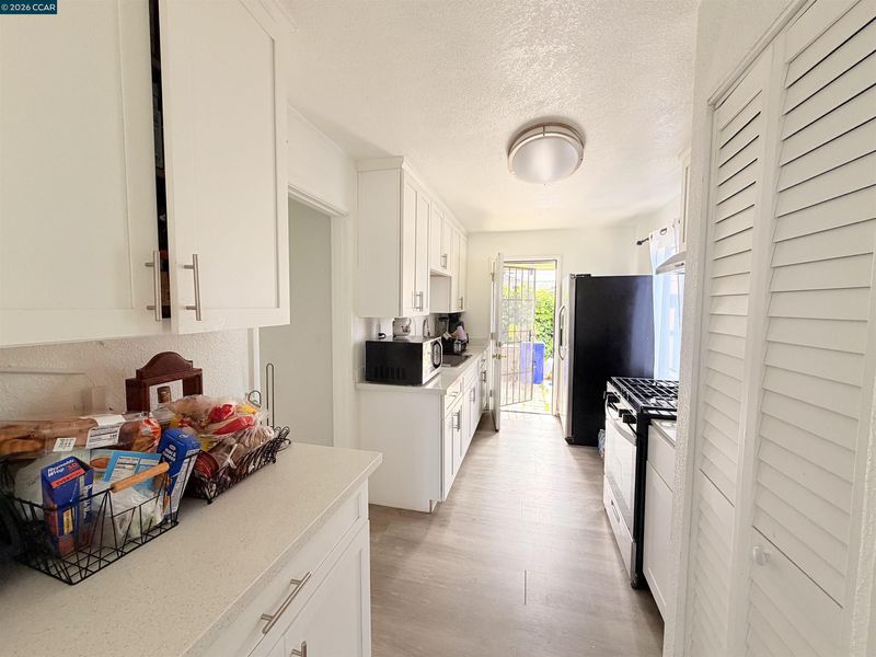 Charming, freshly updated 3-bed, 1-bath home at 238 Fitzpatrick Rd. Featuring white shaker cabinets, sparkling quartz countertops, and modern fixtures. Bathroom upgraded with easy-clean quartz tub surrounds. Well-kept front yard and a large, private backyard with mature fruit trees and a concrete paver patio—ideal for BBQs and entertaining. Long side driveway with room for multiple cars and a detached garage. Highly convenient location close to shops, Oakland Airport, transit, and parks.