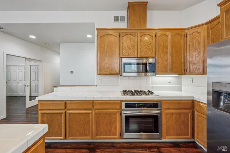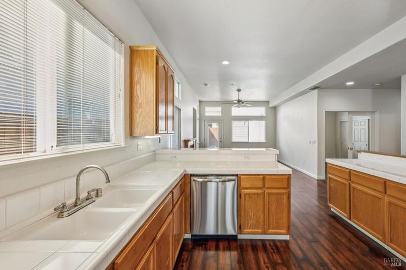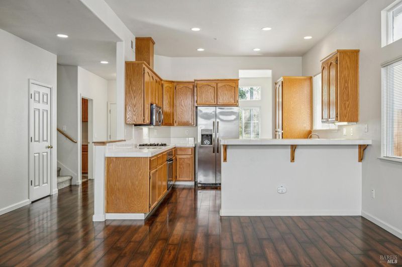 Located in one of Petaluma's most desirable neighborhoods, 1441 Woodside Circle features a spacious and well-designed layout of nearly 2,000 sq. ft. with 4 bedrooms and 3 full bathrooms. The home is thoughtfully configured to live like a single level, with the primary suite and a secondary bedroom/office conveniently located on the main floor. A charming front porch overlooks lush open space and the adjacent walking trail, creating a warm and welcoming first impression. Inside, the entry foyer opens to an expansive great room with soaring ceilings, a central fireplace, and seamless indoor/outdoor flow to the low-maintenance backyard, perfect for relaxing or entertaining. The kitchen is equipped with stainless steel appliances, tile countertops, and a casual eat-in bar, while the separate dining room offers versatility for formal gatherings or additional living space. Upstairs, you'll find two generously sized bedrooms and a full bathroom. Additional features include an attached two-car garage and an interior laundry room. Well-maintained by the original owner of 28 years, this home enjoys a prime location near Meadow Elementary, Kenilworth Junior High, Leghorn Park, Trader Joe's, and many other local amenities.