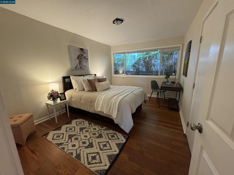 Bay View Gem in Mira Vista Highlands Enjoy stunning sunsets from this bright 3-bed, 2-bath El Cerrito home perched above the Bay. Features include two spacious living rooms, four skylights, fresh paint, recessed LED lighting, and hardwood floors, Ecobee smart thermostat system automatically setup heating or cooling temperature in different areas in the house as you desire. The primary suite doubles as a private ADU with its own entrance and deck. Energy-efficient solar panels are fully owned. Just 1 mile to Del Norte BART, 25 minutes to San Francisco, and close to Mira Vista Country Club, Wildcat Canyon Park, UC Berkeley, and top-rated schools.