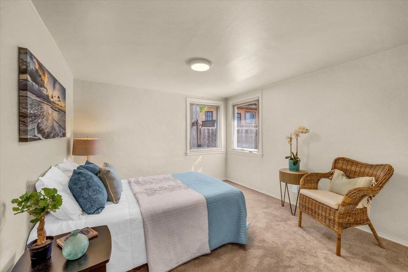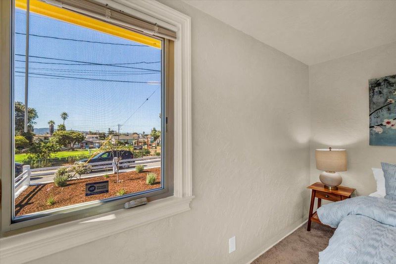 This inviting 2-bedroom, 1-bath charming bungalow in beautiful Seaside, California, offers ocean views from the living room and sits just across the street from a neighborhood park and playground. Filled with natural light through dual-pane windows, the home features a cozy fireplace, hardwood floors in the living and dining areas, and comfortable carpeted bedrooms. The refreshed kitchen and bath blend modern updates with timeless coastal charm. Step outside to a low-maintenance yard that's perfect for relaxing or entertaining. The property also includes an additional 1,800 sq. ft. lot next door, ideal for expansion, gardening, or building an ADU (Accessory Dwelling Unit) for guests or extra income. Enjoy the convenience of three off-street parking spaces plus a one-car garage. Located near shopping, restaurants, and all the best of the Monterey Bay, this charming bungalow combines ocean-view living with everyday comfort and possibilities.
