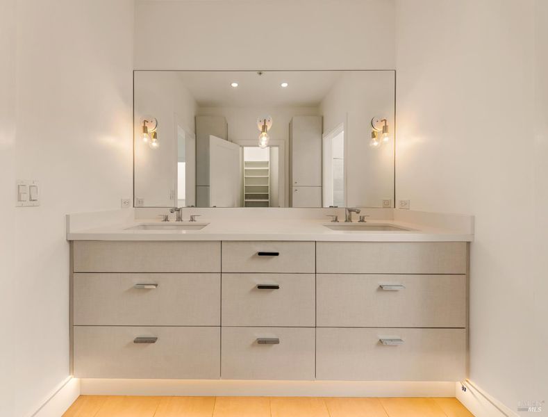 - Double Sinks, Low-Flow Toilet(s), Radiant Heat, Shower Stall(s), Soaking Tub, Tile, Walk-In Closet