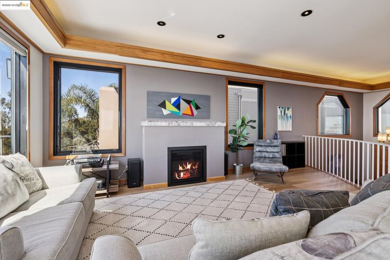 Nestled in the highly sought-after Claremont Hills neighborhood, 680 Hiller Drive offers an exceptional blend of modern design and natural tranquility. Built in 1993, this stunning contemporary home features an open and airy floor plan with soaring ceilings, expansive windows, and breathtaking canyon and Bay views. The main level showcases a spacious living area anchored by a dramatic fireplace, seamlessly connecting to the dining space and a thoughtfully designed kitchen with sleek cabinetry and premium appliances—perfect for entertaining or everyday living. Multiple decks and outdoor areas provide ideal settings for dining al fresco or enjoying the serene surroundings. The primary suite serves as a true retreat with panoramic outlooks, a spa-like bath, and generous closet space. Additional bedrooms offer flexibility for guests, home office, or creative space. A lower-level family room adds versatility for media or recreation. Located just minutes from Claremont Canyon trails, Rockridge, and the Elmwood shops and cafés, this home provides a rare opportunity to live among nature while remaining close to the best of urban amenities.