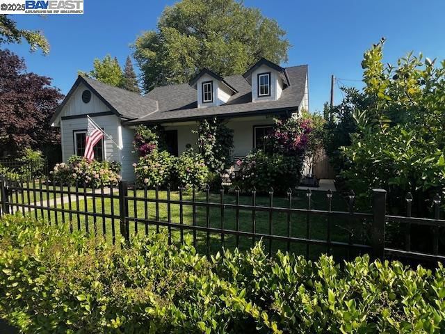 Charming Craftsman/Modern Farmhouse-style home, newly built in 2020, in the heart of Downtown Lodi! Situated on a tree-lined street with signature lighted ball posts, this 4-bedroom, 2.5-bath home blends timeless character with modern comfort. Features include 10-ft ceilings, a spacious great room with fireplace, and an open kitchen with 8-ft island, shaker cabinets, subway tile, solid counters, upgraded faucet and more. Interior upgrades include LVP flooring throughout, custom shutters and window coverings, stylish lighting and mirrors in all baths, ceiling fans in every room, and a custom-designed laundry/mud room. The backyard is an entertainer’s dream with a 10’ x 34’ pool with sun shelf, covered patio, new hardscape, turf lawn, new fencing, metal front gates, and lush landscaping with fruit trees, hydrangeas, bougainvillea, and privacy plantings. Fully irrigated with sprinklers and drip system. Oversized rear-entry garage with storage racks, tile flooring, and conduit for future solar and EV charging. Tankless water heater, fire sprinklers, and gutter guards included. Turnkey living in one of Lodi’s most walkable and sought-after neighborhoods!
