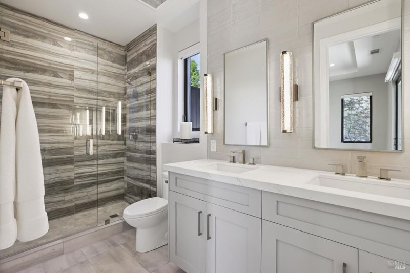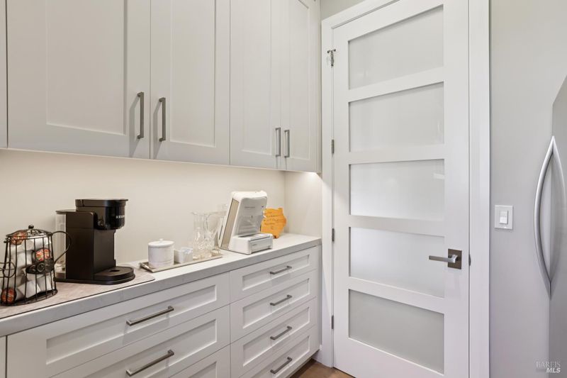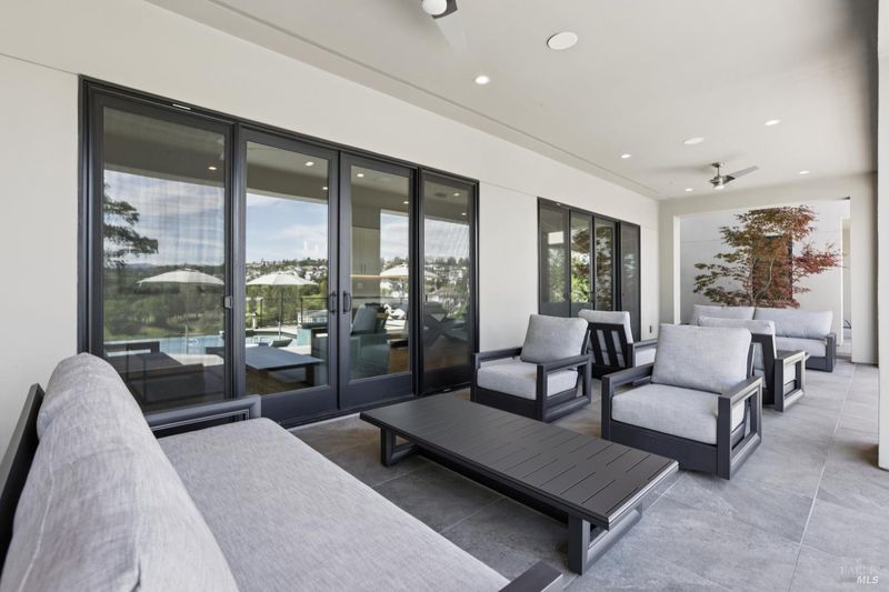 Welcome to this private gated estate where luxury, design, and lifestyle converge. This stunning custom home showcases impeccable craftsmanship and high-end finishes throughout. Step inside to soaring vaulted wood-beamed ceilings, rich white oak wood flooring, and a grand statement fireplace that anchors the light-filled living spaces. Fleetwood retractable sliding doors create seamless indoor-outdoor flow to a covered patio complete with a full outdoor kitchen and TVideal for elevated entertaining. The gourmet kitchen is a showstopper, featuring a 6-burner stove, oversized refrigerator, beverage fridge, warming drawer, waterfall quartzite countertops, and a walk-in pantry with a built-in coffee bar. A dramatic temperature-controlled wine wall adds a sophisticated touch. Retreat to the luxurious primary suite with a private deck and a spa-inspired bathroom offering heated floors, soaking tub, walk-in shower with custom tile, double vanities, and a bespoke walk-in closet with glass storage and center island. Downstairs is an entertainer's paradise with a full bar, pool table, great room, home theater, and covered patio. Outdoors, enjoy a Baja beach pool with dual umbrellas, spa, raised garden beds, expansive patios, and breathtaking views and backing to open space. All on a manicured 1.26 acre private lot. Complete with a 3-car garage, paid solar, and Generac generatorthis estate delivers exceptional living at every turn.