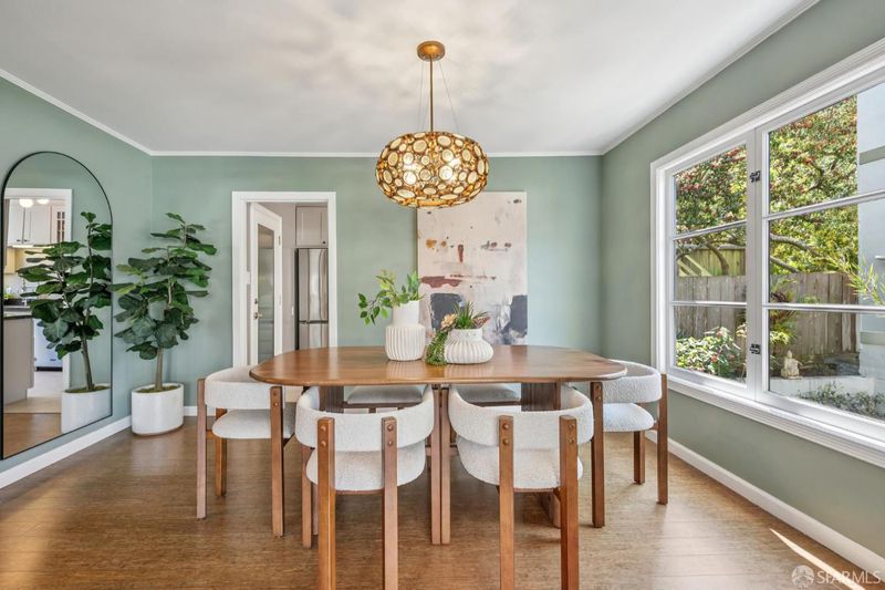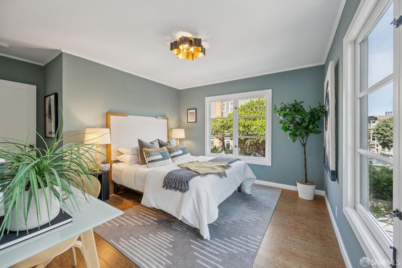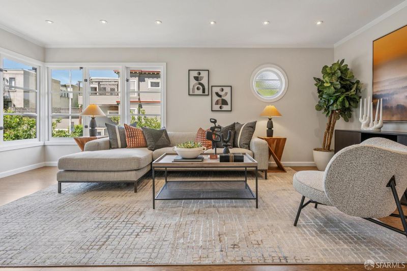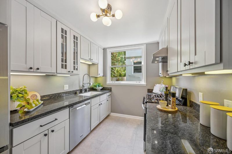 Streamline Moderne charm and Cole Valley convenience come together at 4901 17th Street. This turnkey 2BD/1BA full-floor condo in a corner building enjoys abundant natural light and an ideal location in a residential pocket just blocks from transit, shopping, and outdoor spaces. At the front of the home, the living room basks in light from the north and west, with an ornate fireplace surround adding a touch of period elegance and recessed dimmable lighting to set the tone. The adjacent formal dining room offers a welcoming hub for gathering, while the updated kitchen just beyond features granite counters, stainless-steel appliances, and a super-practical parallel layout. Two spacious bedrooms offer peaceful retreats with neighborhood outlooks and customized closets. A modern bath with built-in storage, plus coat and linen closets, complete residence. Downstairs, a shared courtyard provides a serene outdoor escape. The garage includes independent parking, private laundry, and generous storage with built-in shelves, cabinets, and utility hooks. Ideally located near Mount Sutro trails, Cole Valley's shops and dining, the N Judah, and UCSF. Grattan Elementary attendance area.
