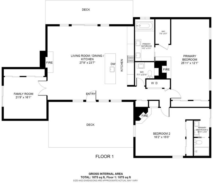 - Primary - Sunken Tub, Shower over Tub - 1, Stall Shower