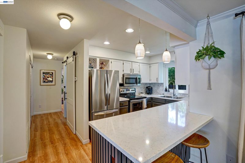 Rarely available!! You will be hard pressed to find another condo like this one for sale any time soon! This adorable, well kept, first floor, end unit is located in one of the most desirable neighborhoods Pleasanton has to offer. Situated within 1 mile of downtown, this tastefully updated condo is within walking distance to fantastic restaurants, nightlife and shopping. The attached, full size, 2-car garage is a hard to come by, highly desirable, additional feature. In-unit washer / dryer hookups! Dining area and master bedroom sliders open to a fenced and landscaped tranquil rear yard. The kitchen, complete with breakfast bar, is finished with quartz counter tops and custom natural stone tile backsplash. Floors covered with hardwood style laminate. Updated bath. Very clean, very chic! This 5 unit condo complex is directly across the street from Kottinger Park and backs to open space. Low HOA fees! MUST SEE in person to appreciate all that this property has to offer.