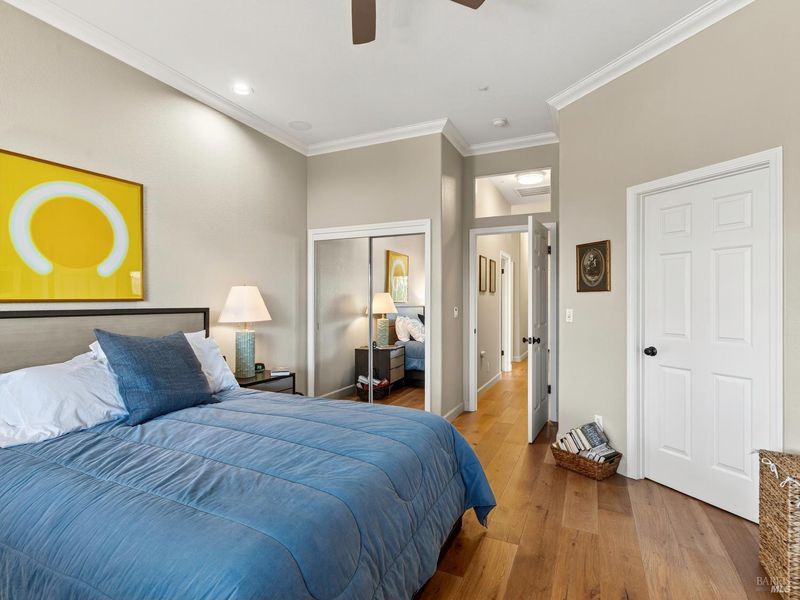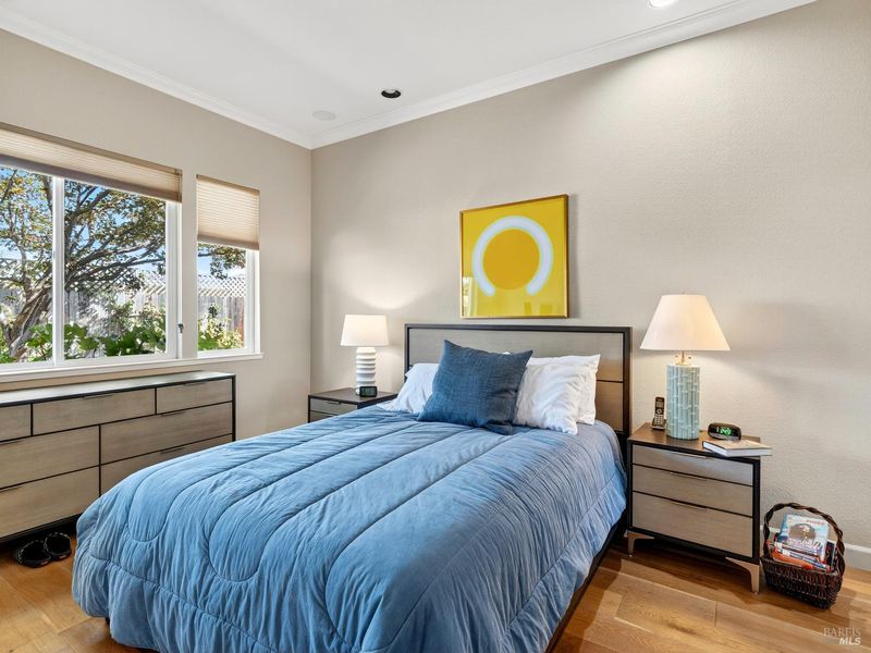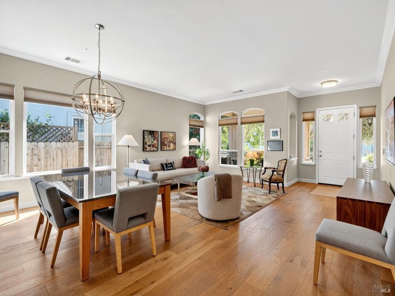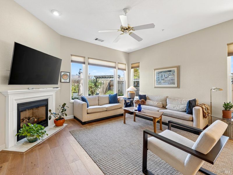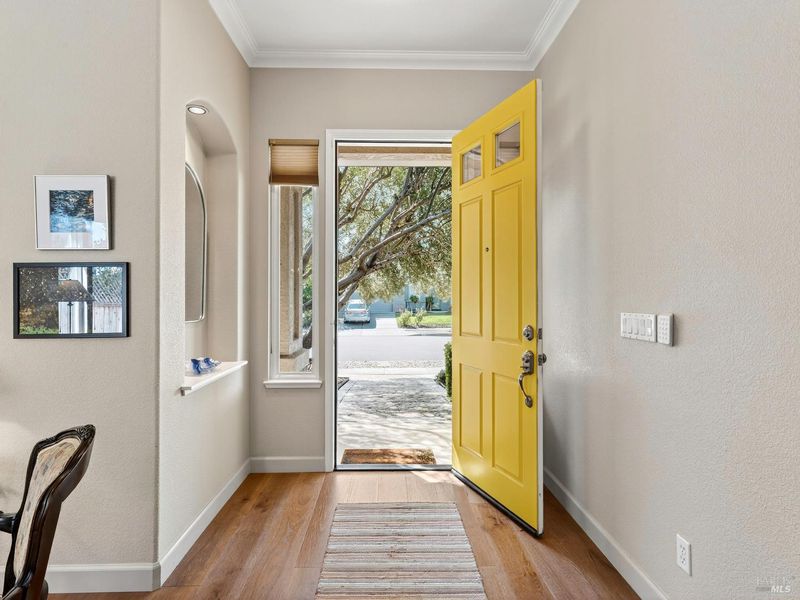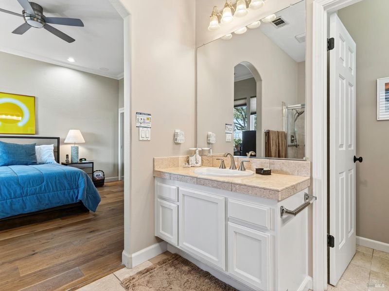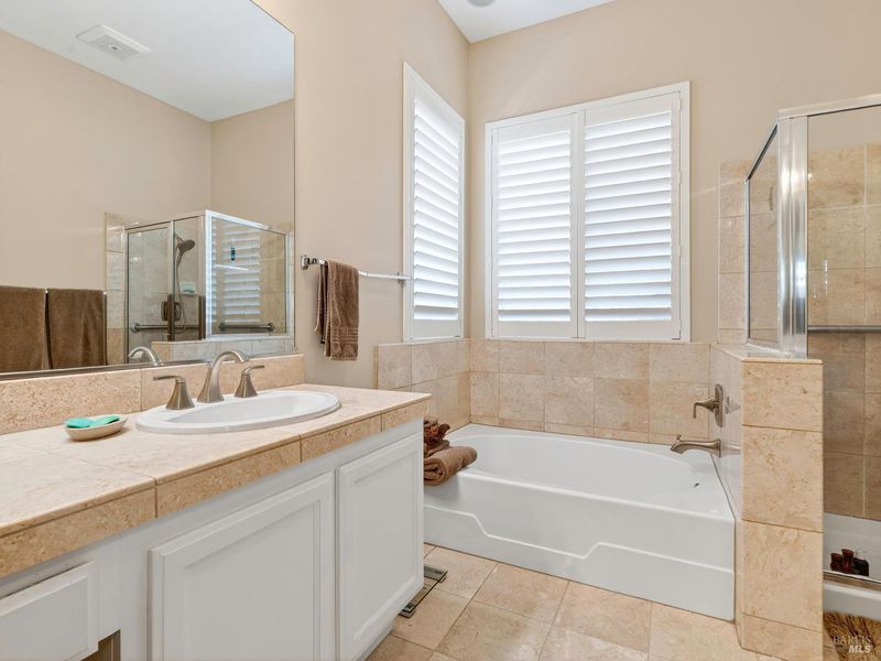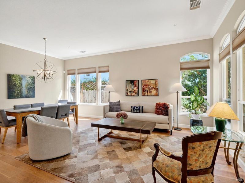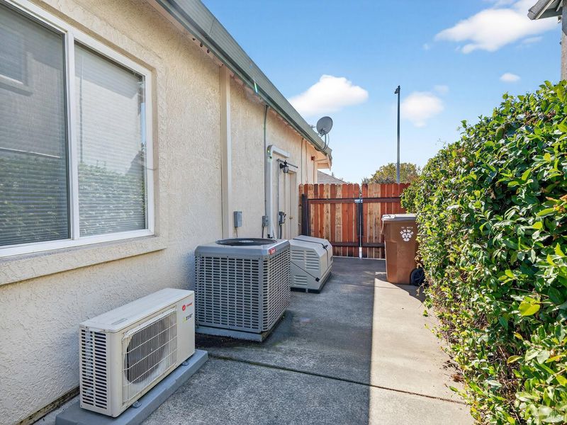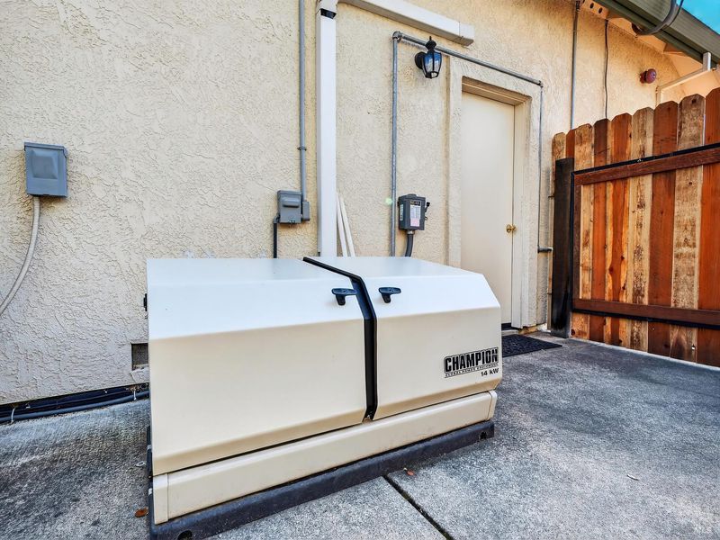 No. Napa Valley wine country location--Energy efficient, self Generating House only minutes to Downtown Napa or Yountville. Elegant single story eco-conscious home-- meticulously maintained and updated with low maintenance front yard. Countless upgrades include a Champion full house generator, Seller-owned Solar, newer HVAC system, high ceilings, ceiling fans, dual pane arched windows w/luxury shades, private low maintenance backyard oasis with stamped custom concrete patio, driveway and walkway, and new fencing and gate. The spacious gourmet kitchen, with stainless steel appliances and an island sink, flows seamlessly into the cozy family room with gas fireplace creating relaxed living and effortless entertaining. Wide plank Oak floor thru out, 50 year tile roof, recessed lighting, plus a large 2-car garage with separate heating and cooling unit, built-in shelving and workbench. The large primary bedroom with walk-in closet leads through an arched entry to the spa-like primary bathroom with dual vanity sinks and separate tub and shower. Home is wired for surround sound with built in speakers and security alarm systems. Truly a treasure in a quiet community neighborhood.