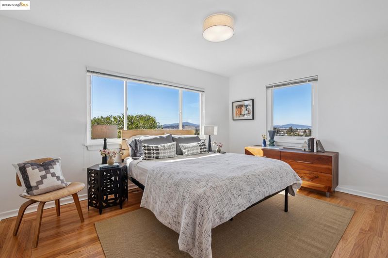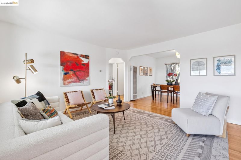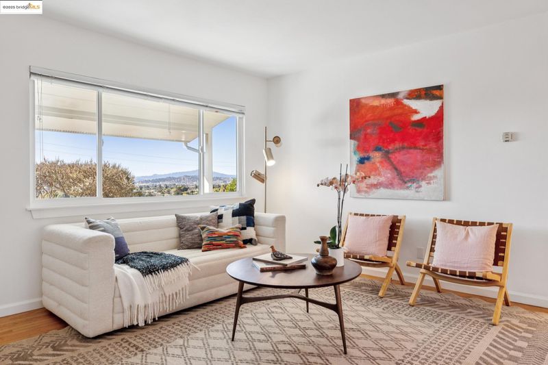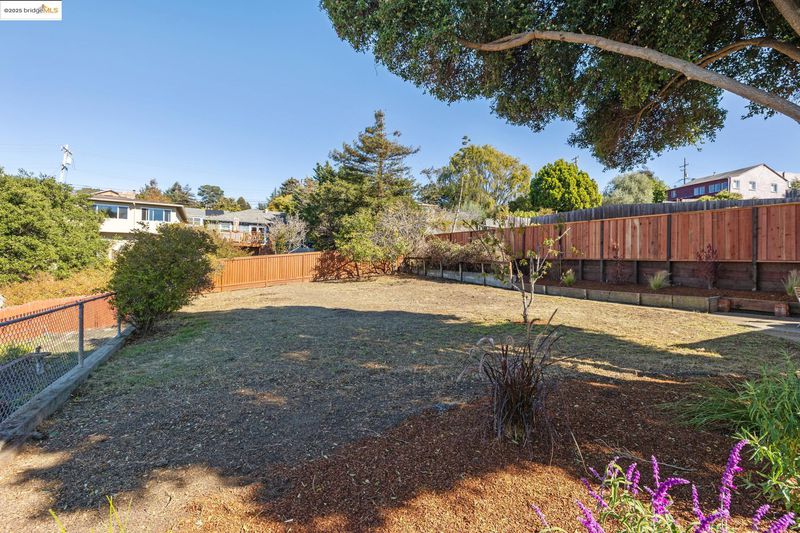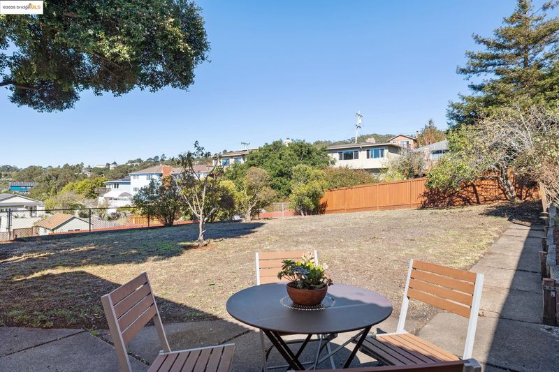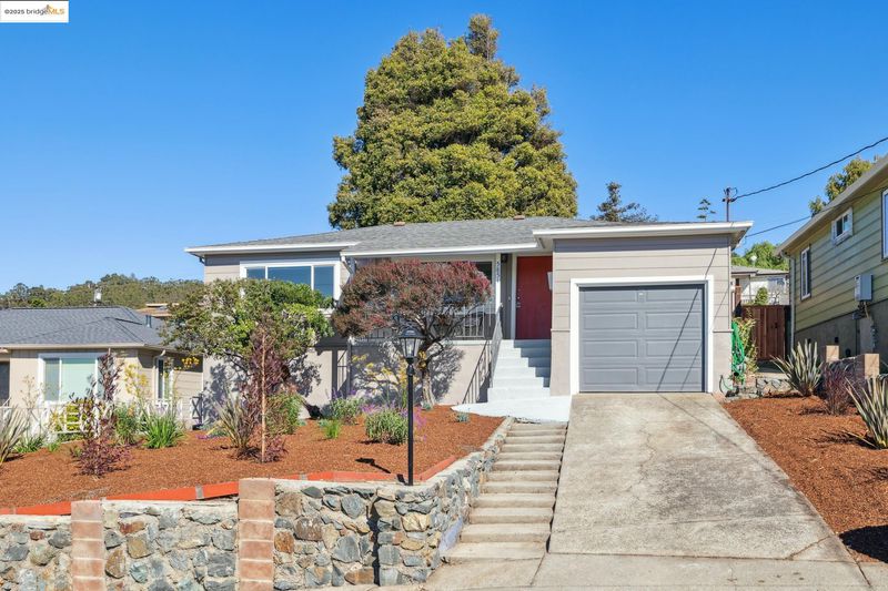 Have you always wished you had a home with panoramic views and a yard large enough for an orchard or a small urban farm, or perhaps a backyard studio for art projects or other pursuits, but could never find a home with a yard large enough to support these passions? Your wish has come true. 5851 Ralston Ave, a sweet mid-century home, sited beautifully above the street, has a sun-filled, 7500 square foot lot, with the gentlest of slopes. Amazingly, the backyard is almost level. Now let your creative juices flow. This delightful home welcomes you with a spacious front porch, positioned perfectly to take in the views. The living room with a large picture window and gleaming hardwood floors, has equally stunning views. The adjacent formal dining room opens to the backyard as well as an updated kitchen with quartz countertops, newer appliances and generous cabinet space. A pantry space and half bath are conveniently located off the kitchen. Two bedrooms, one with beautiful views and a huge closet, share an updated bath with a large soaking tub and a shower above. A laundry/plus rm with a separate entrance and a detached garage provide great storage and versatility. Additional features include fresh interior paint, dual pane windows, and fabulous proximity to Wildcat Canyon Park.