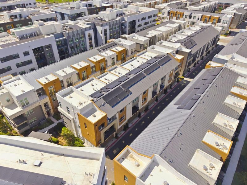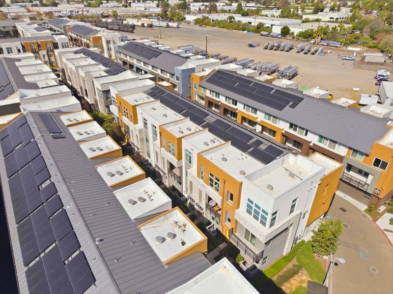 Discover this stunning 4-year-new townhome-style condo in the sought-after Metro West community in Fremonts Innovation District. Thoughtfully designed for modern living, this home features a bright, open floor plan with high ceilings, abundant natural light, and a low HOA in the $300s. Stylish interior includes luxury vinyl plank flooring, quality cabinetry, and premium finishes throughout. The upgraded kitchen offers quartz countertops, premium stainless steel appliances, ample cabinetry, and a spacious island ideal for cooking and entertaining. The primary suite features high ceilings, large windows, a modern en-suite bath with dual vanities, and a walk-in closet. The second bedroom includes its own full bath, perfect for guests or a home office. 2-car tandem garage with flex space provides room for parking plus an office, gym, or extra storage. Enjoy access to a BRAND NEW community clubhouse and fitness center. Smart and energy-efficient with solar, smart thermostat, and modern connectivity. Prime location near Tesla and major tech shuttle stops, with easy access to BART, Hwy 880/680, shopping, dining, parks, and schools. Dont miss this contemporary, low-maintenance home in a vibrant, growing neighborhood!