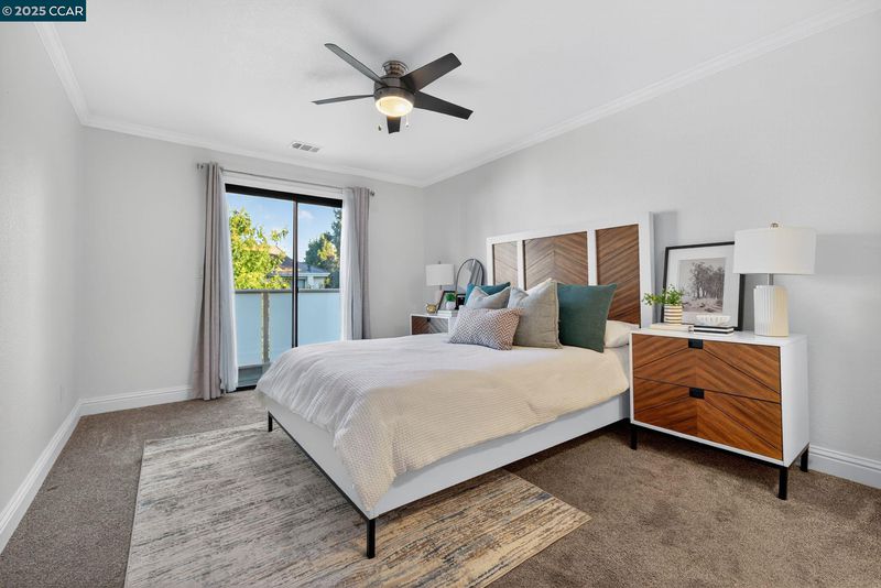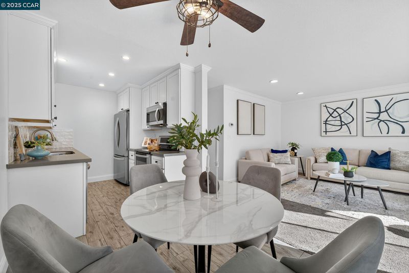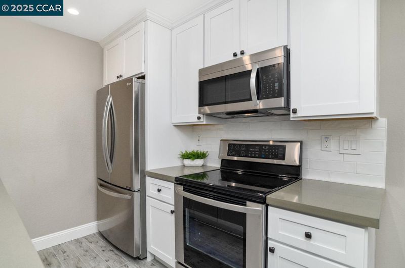 Full of natural light, beautifully remodeled and partial views of Mount Diablo from your private balcony, this home is move in ready. The stunning kitchen offers stainless steel appliances, quartz counter-tops, full tile back-splash, rich white cabinetry with pullouts, soft close hinges, and stainless-steel sink. Bathrooms include tile flooring, tile shower enclosures, frame-less shower doors, and luxurious vanities, with the Primary bathroom boasting a 5-foot walk-in tile shower enclosure. Additional features include new heating & AC, thick plush carpeting, hand-scraped wood tile flooring, decorative crown moldings, solid European 2 panel doors, bronze door knobs and hinges, inside laundry with washer and dryer. The community offers a dog park, picnic, and BBQ, putting green and large lawn area all located close to Iron horse trail, schools, easy freeway access and just minutes from downtown Danville dining and shopping.