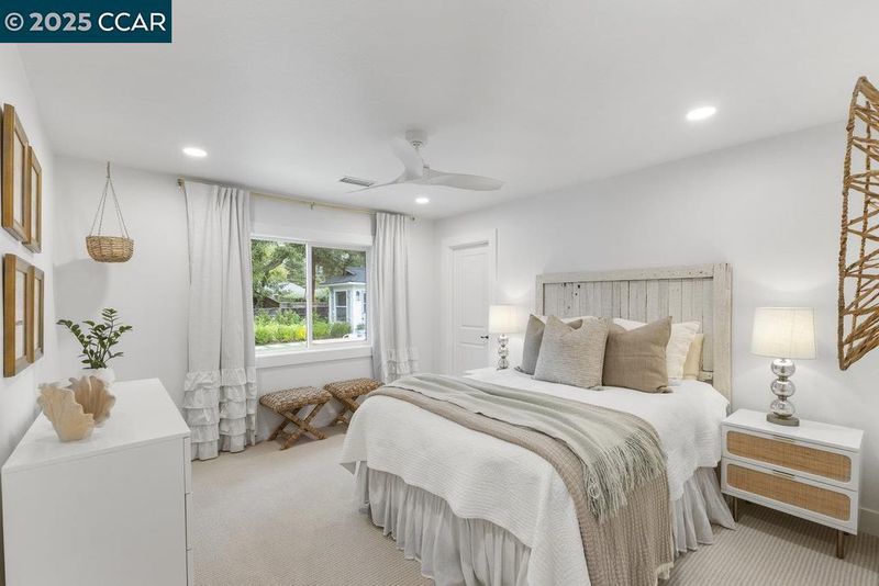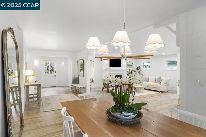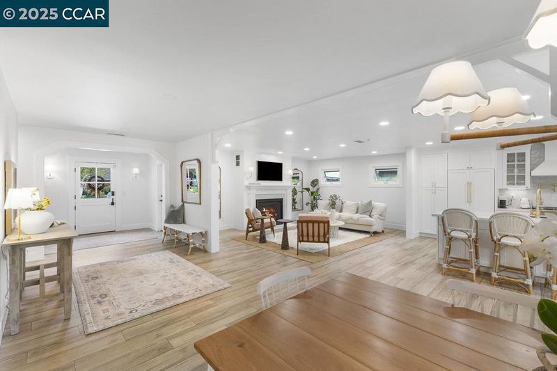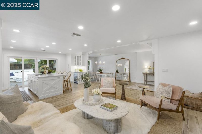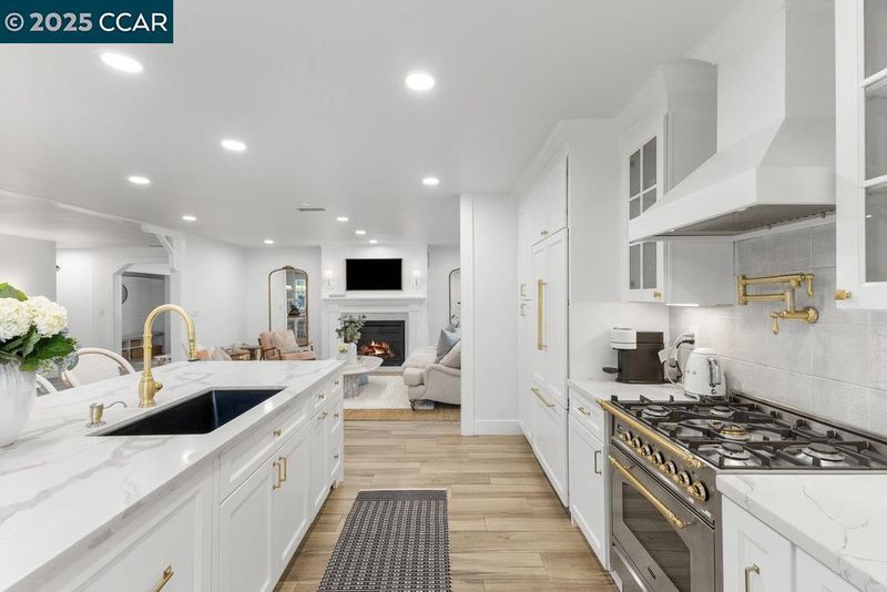 This single-level ranch home blends timeless charm with modern sophistication. An inviting herringbone entry and dutch front door open to a spacious floor plan connecting the living, dining, and kitchen areas with wide wood-look tile plank floors. The living room features a custom gas fireplace and shiplap-accented dining area with a sunny bay window. The stunning kitchen impresses with a large quartz island, Italian ILVE gas range, double dishwashers, built-in wine fridge, and French-door refrigerator, all opening through multi-panel sliding glass doors to the backyard welcoming a smooth transition to indoor-outdoor living. The serene primary suite offers dual vanities, a spa-inspired double shower, walk-in closet, and private hot tub retreat. Enjoy outdoor living with a Trex deck, custom outdoor fireplace, and lush rose-lined yard. A detached, refurbished casita provides flexible use as an office, gym, or a play space, the options are endless. Located near top-rated schools, downtown Walnut Creek, and BART—Parkmead living at its finest.