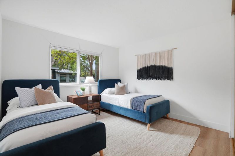 Exquisite remodeled ground-level end-unit in desirable Menlo Oaks. Bright open flr plan w/ wide-plank flrs & sleek modern baseboards, abundant natural light & stunning all-new lighting fixtures in every room. Spacious living rm w/ fireplace opens to private patio for seamless indoor-outdoor living ideal for relaxing or entertaining. Updated chefs kitchen w/ quartz counters white cabs & high-end finishes flows to dining area. Generous bdrms ample closets + remodeled baths w/ LED lighting modern mirrors & frameless glass showers. Triple-pane windows specially designed ceiling for dampening sounds fresh paint in-unit W/D add comfort & efficiency. Detached 1-car garage + assigned prkg + extra storage. Quiet well-kept community w/ pool lush landscaping & peaceful oasis feel. Walk to Caltrain close to downtown Menlo Park & Palo Alto shops dining cafes restaurants. Surrounded by mature trees Little Free Libraries Bike-friendly hidden paths & creek. Near Stanford Meta top tech, Avenidas senior center multiple neighborhood parks playgrounds trails, top Schls. Rare end-unit privacy turnkey Silicon Valley living in prime location. Low-maintenance lifestyle ideal for owner-user or investor strong rental appeal highly sought location. Modern finishes high-end touches upgraded throughout.