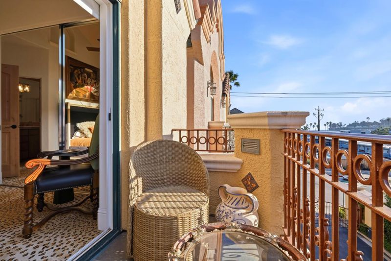It's chic beach living! Ocean views and fresh ocean breeze within walking distance to the Santa Cruz Wharf. Mediterranean style townhouse in the gated Villa Mar Vista community on Beach Hill. This beautifully kept 2 bedrooms plus office and 3 full bathrooms across 1,350 interior square feet. Quality construction includes a clay/tile roof. Amenities include a one-car attached garage with storage, inside laundry, and nine-foot alcove ceilings on the main level. Enjoy year-round comfort with three gas fireplaces in the living room and primary bedroom, plus a private rear paver patio for outdoor enjoyment. The primary benefit is the unrivaled location, offering bay and ocean views with a short stroll to Santa Cruz beaches, the Boardwalk, and Pacific Avenue.
